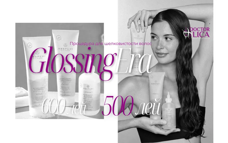 6. Glossing Era . Процедура для шелковистости волос. Цена со скидкой 500 mdl.